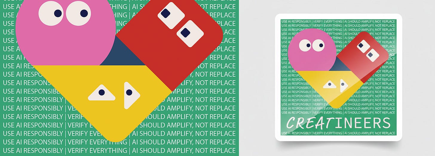 We’re launching a new AI program for middle school students at the end of the month, and I need folders to hold their worksheets and materials. I wanted something that felt branded — something that made it feel like theirs. So I designed a sticker specifically for the program to put on the folders (and to remind them of the core message - “Use AI Responsibly | Verify Everything | AI should Amplify, Not Replace”)